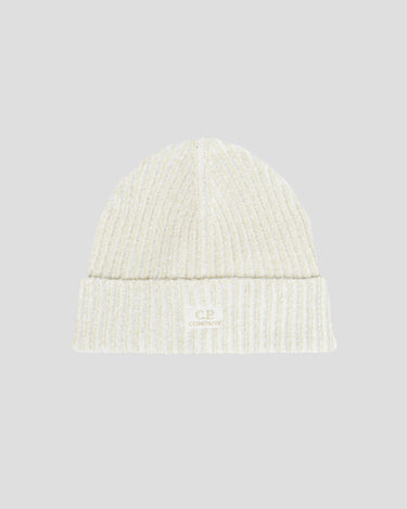 Ribbed knit beanie with the C.P. Company logo detail on the turn-up brim. Knit in premium fleece for a fit that remains insulative and hard-wearing.