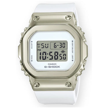 Introducing the new compact G-SHOCK models that are great choice for women who prefer the active G-SHOCK styling. This iconic square design of the 5600 Series is now equipped with a metal-covered bezel. All the shock resistance of the GM5600 in a smaller size for a lightweight and comfortable fit to the wrist. These designs blends elegance and casualness in ways that make them go great with street fashions. The case and bezel have mirror finishes that enhance the texture of the metal. This lineup provides a choice of four colors, including two pink gold models, a champagne gold model and, a silver model.