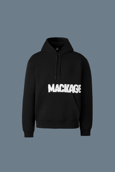 KRYSTIAN-PR is a classic hoodie crafted to a relaxed fit from ultra-soft double-face jersey. Large kangaroo pocket and rib knit trim add timeless styling. A relaxed layer-ready silhouette, a 'MACKAGE' logo is a screen printed at front. The perfect all-season indoor-outdoor staple.