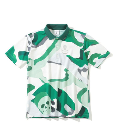 Crystal stones are placed in an iron skull design on the left chest, with a metallic plate with logo engraving below it, a metallic logo charm on the collar tip, and metallic embroidery of a swinging skull on the side. The placket is decorated with logo-engraved shell buttons. The main body fabric features high stretch and kickback, as well as the moisture absorbency and breathability of polyester. The body and shoulder areas are roomy, while the sleeves are sharp for a sophisticated style.