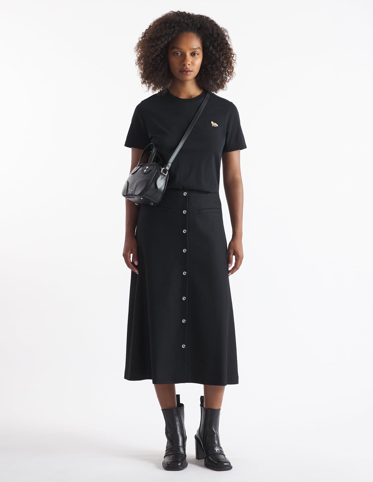 Women's Baby Fox Patch Regular Tee Shirt Black
